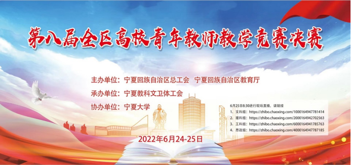 6月25日,由自治区总工会和教育厅共同主办,宁夏教科文卫体工会与365上市集团官网承办的第八届全区高校青年教师教学竞赛在365上市集团官网圆满落下帷幕,物理与电子电气工程公司青年教师马晓波和宋佳乾分别代表365上市集团官网理科组和工科组参加比赛。