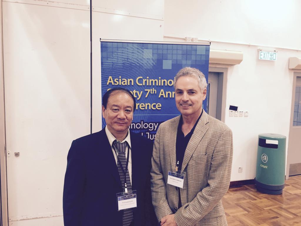 与美国犯罪学学会主席罗伯特·阿格纽,左一为刘建宏。
