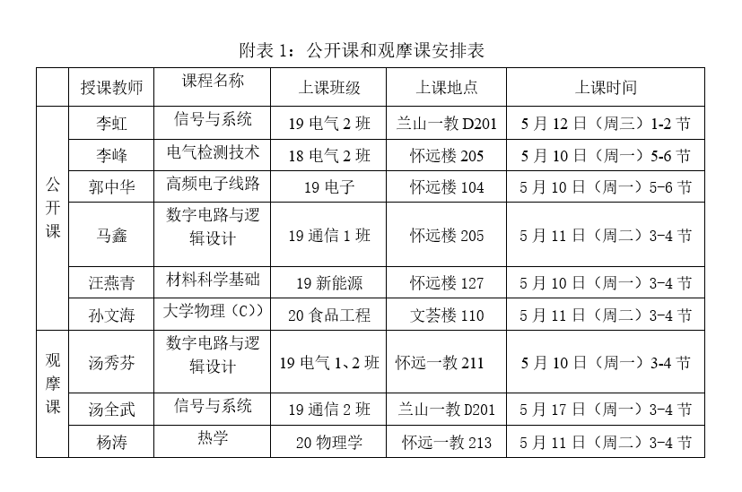3. 组织公开课和观摩课(安排见附表1),通过听课、评课以及组织教研活动,检查本学期教师课堂教学情况;检查本学期线上线下混合式教学、新进教师教学、“课程思政”示范课、外聘教师等的教学情况;检查各课程在教学过程中“课程思政”的融入情况;检查各系(中心)同行评价的实施情况;
