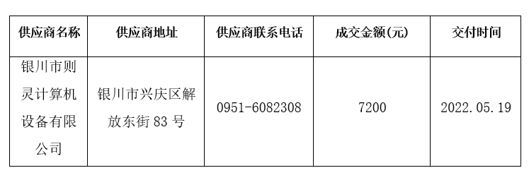 五、成交理由:经过市场询价,银川市则灵计算机设备有限公司所报的产品符合要求,且价格最低。