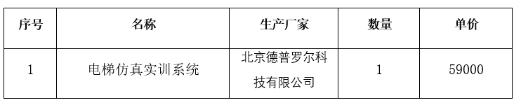 一、采购项目名称:电梯仿真实训系统自主采购项目