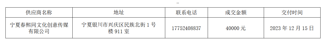 经过市场询价,宁夏春熙同文化创意传媒有限公司所报的产品符合要求,且价格最低。