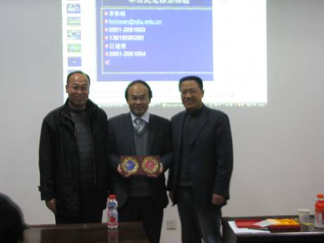 12月6日,在兰州大学物理科学与技术公司党委书记景泽明、经理薛德胜陪同下,我们参观了该公司的国家重点实验室和部分相关实验室,参观过程中,李新碗经理和薛德胜经理进行了深入的交流和沟通。随后,李经理在兰州大学格致楼学术报告厅向部分研究生和本科生进行了“智能沙漠”学术报告,员工们很有兴趣,会后不断地提问、咨询和了解,会场交流气氛浓厚。下午5:30,我们去中国科公司兰州分院寒旱沙漠研究中心进行了参观学习和座谈交流。