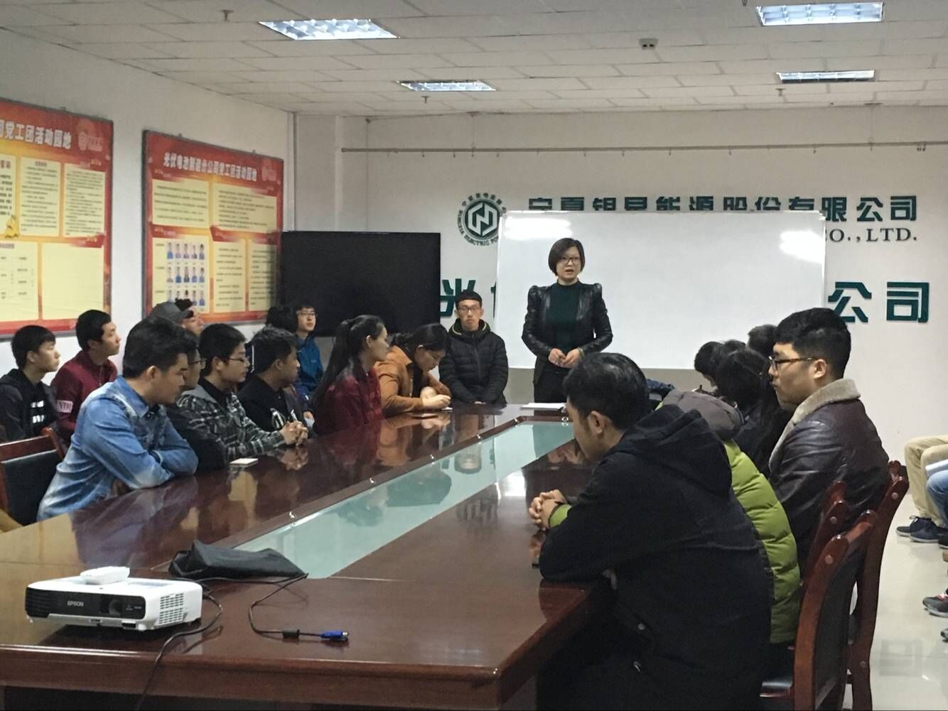 宁夏银河光电科技有限公司主要从事太阳能电池及太阳能电池组件的研发与生产,晶体硅材料和太阳能应用产品的销售。活动期间,公司行政主管麻晓芳介绍了关于我们及参观过程中的注意事项;生产部经理石权为员工们进行了关于太阳能电池生产流程的培训,细致讲解了制绒、扩散、刻蚀、PECVD、丝网印刷、分类检测等过程中涉及的理论知识和安全生产注意事项等;总经理仲志海带领同学们参观了太阳能电池生产线,讲解了生产流程中各个环节使用的设备及工艺、表征产品性能和质量的重要指标等。