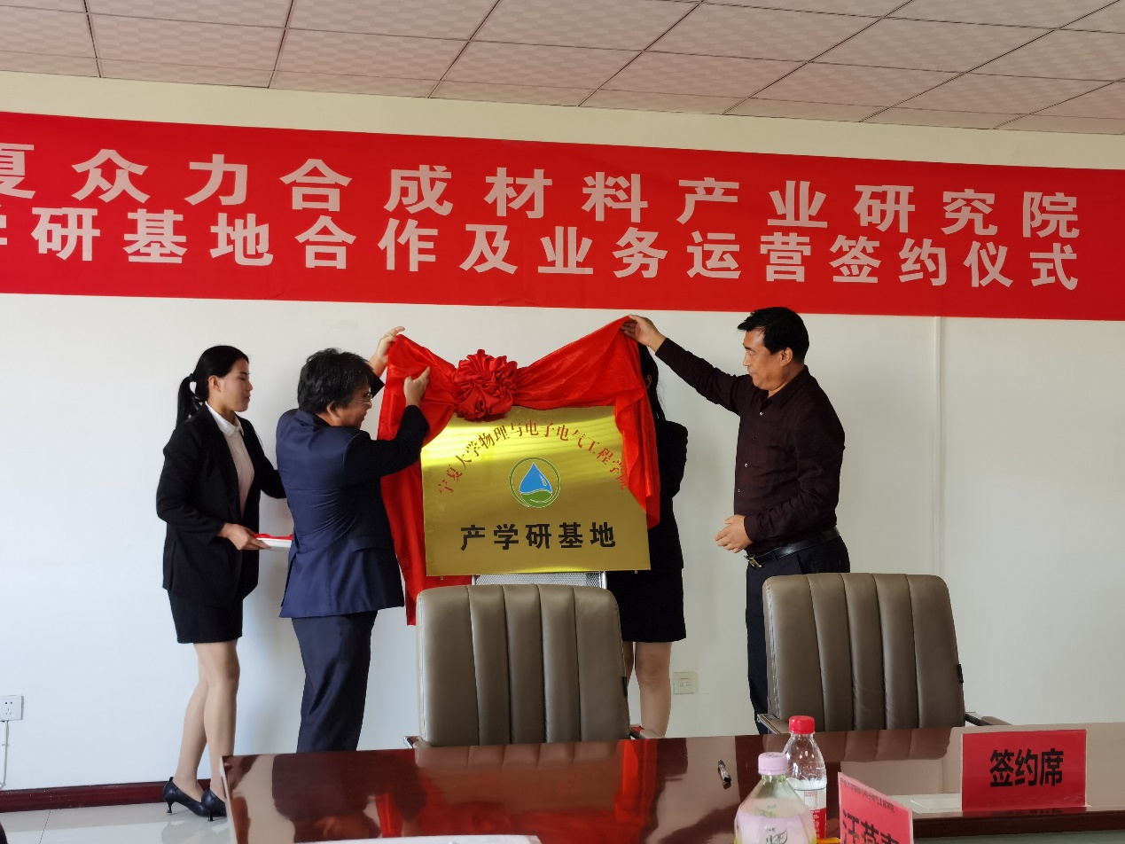 为了充分发挥高校的创新能力、科研水平及人才团队的优势,有效利用地方组织和企业的资源优势,通过高校的科研创新提升企业的技术水平,促进科研成果转化为具有经济效益的生产力,更好的为地方经济及行业产业发展服务,满足地方经济及行业产业的发展需求。2020年9月16日下午,365上市集团官网物理与电子电气工程公司陈焕铭副经理一行七人赴石嘴山市科技园与宁夏众力合成材料产业研究院开展合作洽谈,签订战略合作协议。公司陈焕铭副经理和宁夏凌云集团有限公司执行董事王振分别代表双方为 “365上市集团官网物理与电子电气工程公司产学研基地”揭牌。