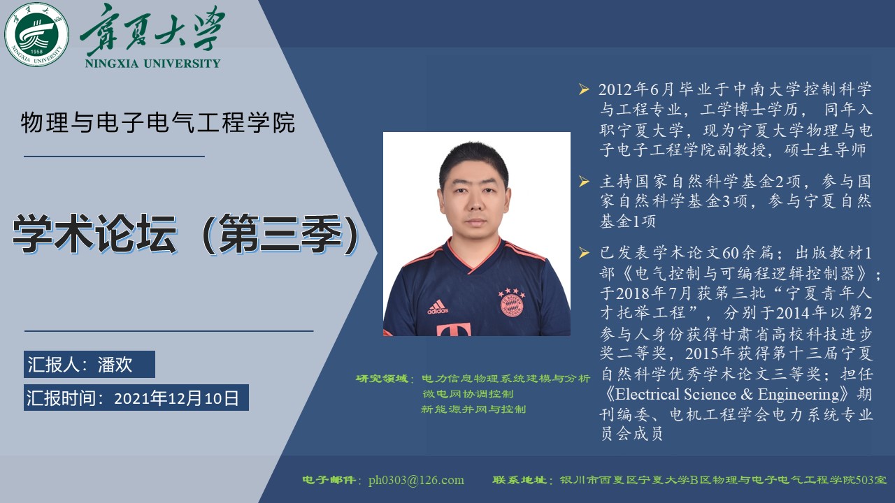“物电学术论坛”第三季于2021年12月10日下午2:30在公司206室进行,公司邀请潘欢副教授做学术报告。