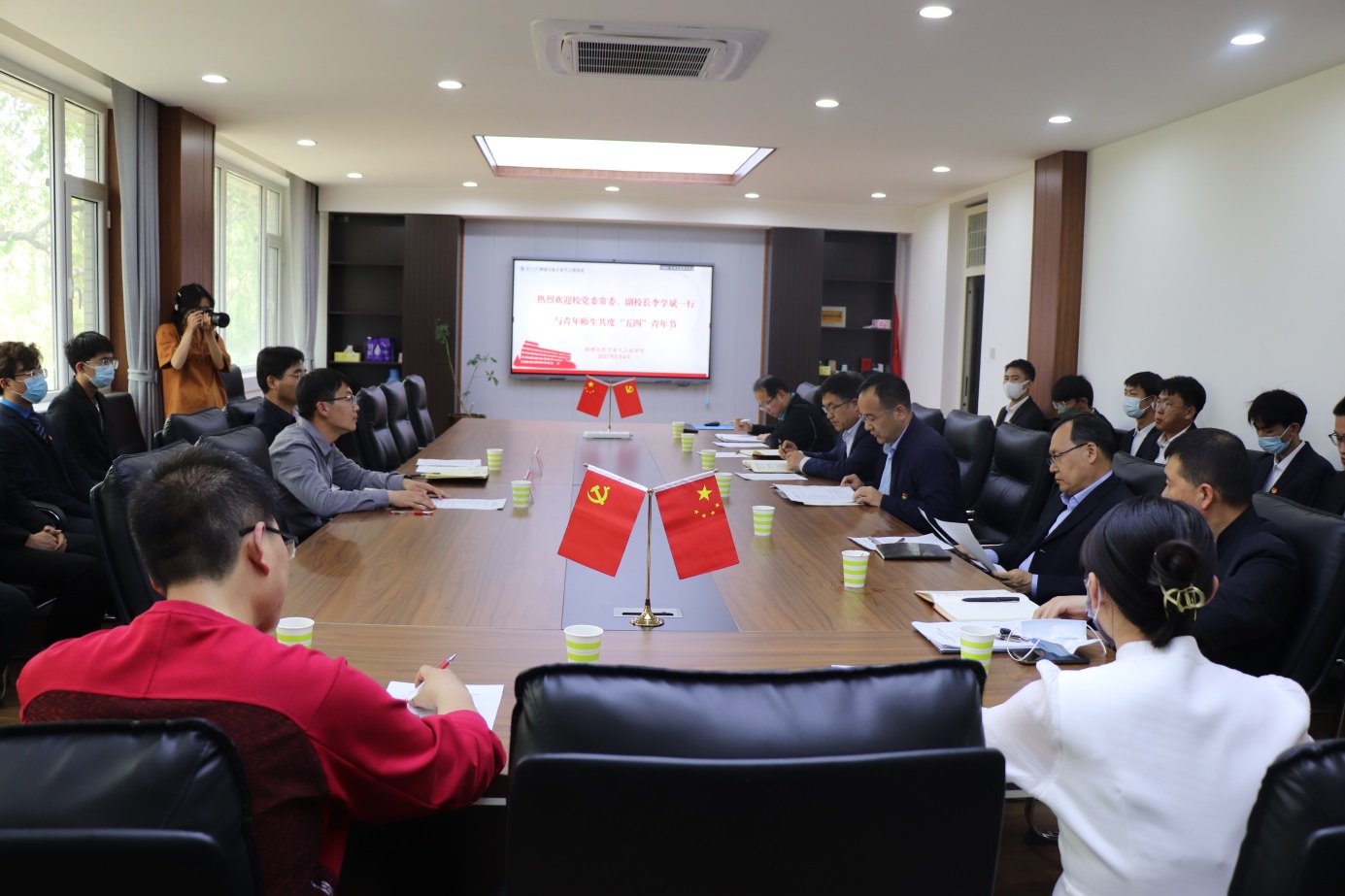 2022年5月4日,在第73个五四青年节之际,公司党委常委、副董事长李学斌在校团委副书记秦泗海的陪同下到物理与电子电气工程公司,开展“集青春之智慧 显青年之担当”主题调研指导工作。公司领导班子成员、全体辅导员及优秀员工代表参加了座谈会。