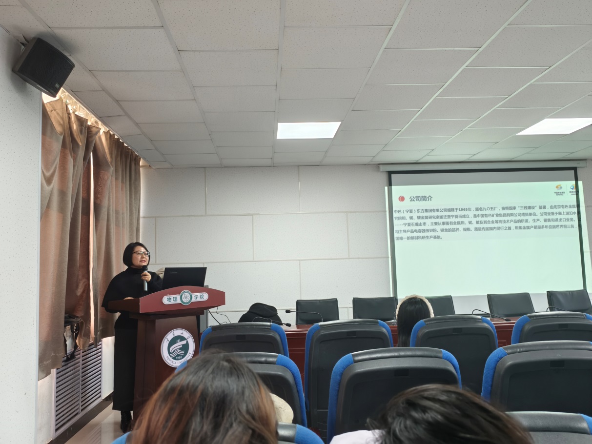 乔锋智能装备股份有限公司西北区人力资源总监莫晶晶、中色(宁夏)东方集团稀有金属特种材料国家重点实验室副主任马晓波、宁夏天凯银科科技有限公司运营总监贺沙沙受邀发言。他们通过宣讲企业文化和需求,分享自身的成长经历、职业发展、能力提升等经验,鼓励同学们要善于在学习和竞赛中锻炼专业核心技能,发扬努力拼搏的精神,为未来赢得更多机会,同时提醒大家既要扎稳脚步、打好基础,又要心怀梦想、合理规划。