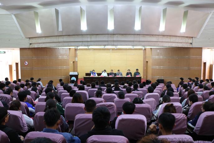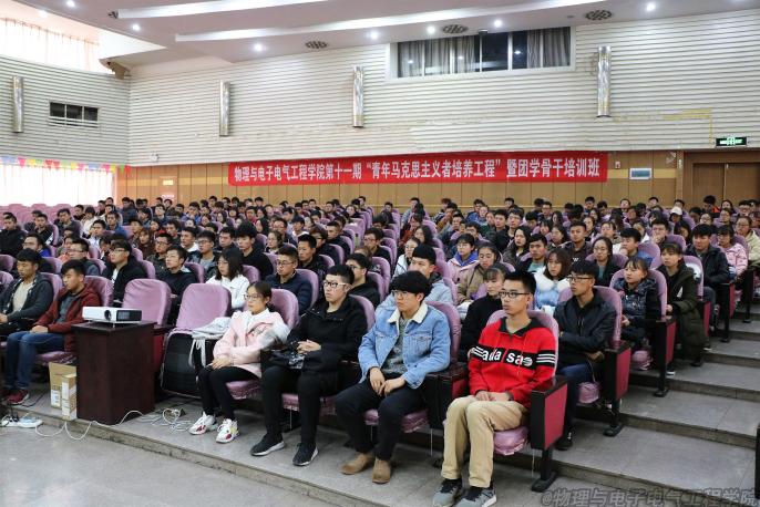 为进一步贯彻落实党的十九大精神,深入学习习近平新时代中国特色社会主义思想。11月14日中午,物理与电子电气工程公司分党校第三十三期入党积极分子暨第八期发展对象培训班开班典礼仪式在怀远校区图书馆报告厅举行。出席本次会议的有公司党委书记王志霄,党委副书记、经理王旭明,党委副书记马玉玲,辅导员秦泗海、王巳卉、贾春刚老师,以及本期培训班全体学员。