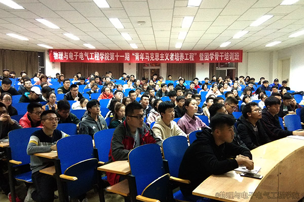 11月19日晚上,物电公司于怀远一教231教室举行物理与电子电气工程公司分党校第三十三期入党积极分子暨第八期发展对象培训班、第十一期“青年马克思主义者培养工程”暨团学骨干培训班培训活动,本次活动培训班全体学员观看纪录片《榜样3》,活动由辅导员王巳卉老师主持。