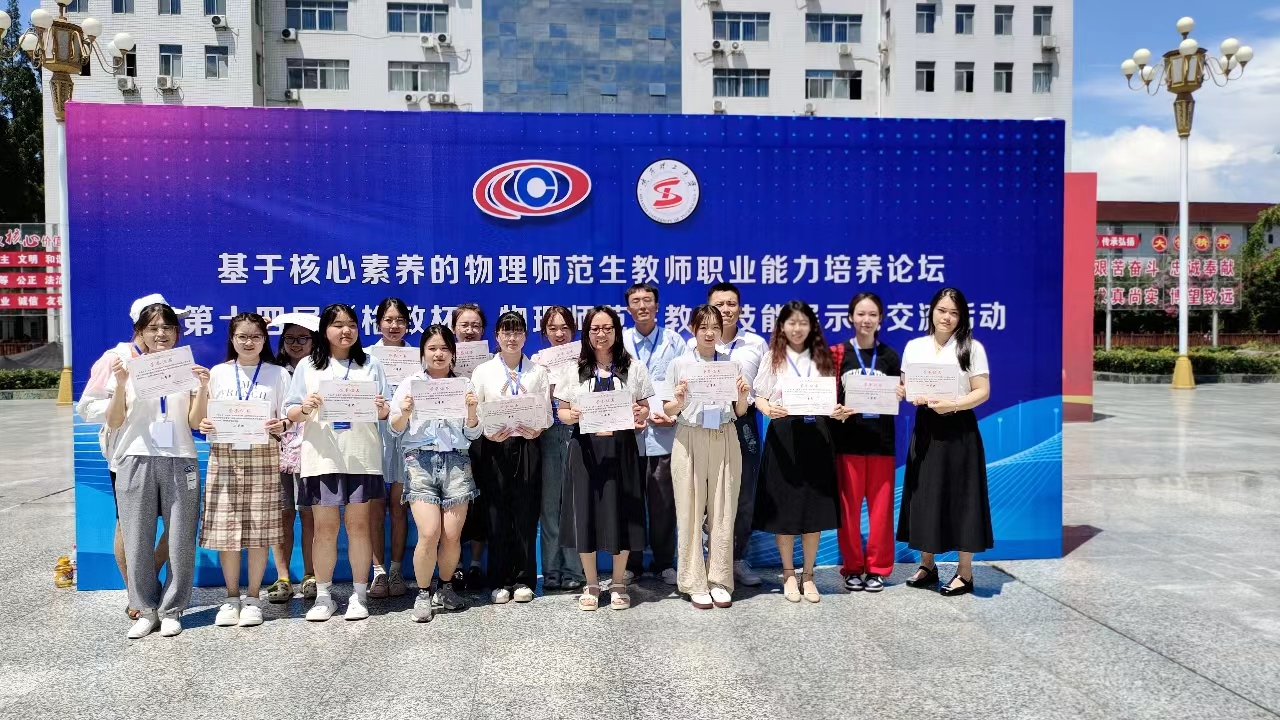 经选拔,365英国上市公司派出了由2020级物理学教师教育专业8名本科生和2022级学科教学(物理)12名研究生组成的参赛团队。在公司指导教师团队的督促指导下,各位同学刻苦训练,为迎战比赛做好充分的准备。通过与百余所高校参赛选手的激烈比拼,365英国上市公司学子捧杯而归,本科生团队斩获一等奖1项,二等奖2项,三等奖4项;研究生团队斩获一等奖3项,二等奖4项,三等奖3项。具体获奖信息为:董益汎/本科组教学技能一等奖;杨飞雁/本科组教学技能二等奖;范若萌/本科组教学技能二等奖;张婷婷/本科组教学技能三等奖;马宝成/本科组教具制作三等奖;冯小玲/本科组教具制作三等奖;吴巧艺、丁佳琦/本科组教具制作三等奖。刘培雨/研究生组教学技能一等奖;刘晓华/研究生组教学技能二等奖;王一帆/研究生组教学技能三等奖;夏文刚、刘晓华、李佳微/研究生组教具制作一等奖;王倩、乌兰塔娜、王佳丽小组/研究生组教具制作二等奖;王佳丽/论文展示一等奖;张燕、史文晶/论文展示二等奖;李海涛、王亚琪/论文展示三等奖。