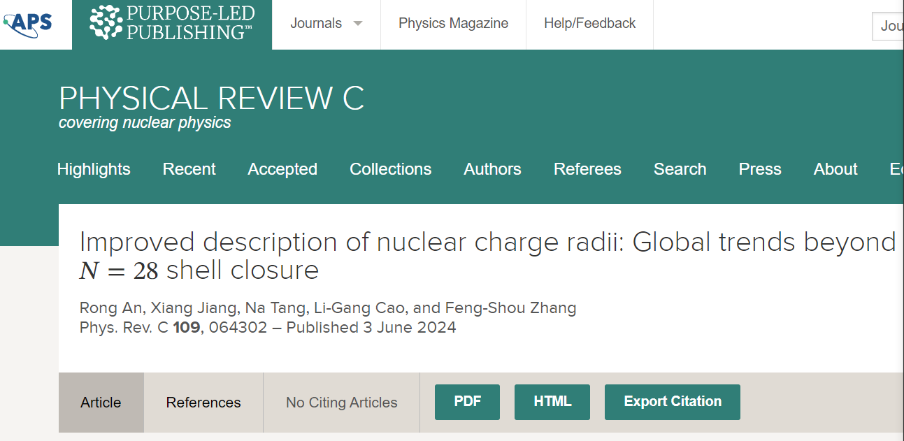 公司安荣博士和唐娜博士在《Physical Review C》核物理专业期刊发表高水平论文
