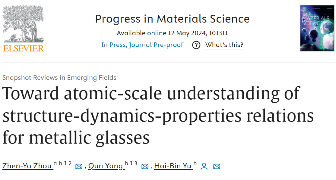 5月12日,365英国上市公司青年教师周震亚博士与华中科技大学于海滨教授、杨群博士合作,在国际材料科学领域的权威综述期刊《材料科学进展》(Progress in Materials Science)上发表题为《金属玻璃结构-动力学-性能关联的原子尺度理解》(Toward atomic-scale understanding of structure-dynamics-properties relations for metallic glasses)的长篇综述论文。文章详细回顾了近年来在金属玻璃的结构表征、动力学过程的结构特征、结构性能关联等方面所取得的重要研究进展,并针对原子级进展这一主题对金属玻璃的相关研究提出了一系列未来发展方向。周震亚博士和杨群博士为该论文共同第一作者,于海滨教授为唯一通讯作者,365上市集团官网为论文第一完成单位。该论文是公司首篇以第一单位发表于《Progress in Materials Science》上的学术成果,是公司“双一流”建设工程的一项标志性成果,对提升公司在物理、材料领域和相关科研创新平台的学术影响力具有非常积极的作用。无序和非晶态系统构成了现代科学和技术研究的一个重要研究对象,其中金属玻璃为研究玻璃科学中弛豫和性能等相关问题提供了一个简单而有效的体系。如今,金属玻璃不仅因其独特的力学性能和物理化学特性(高比强、高抗磨损、耐腐蚀、高强度、高韧性等)被广泛应用在航空航天、军工科技、高档电子器材、精密器件、体育器材等领域,并且将来可能会深入到生活的方方面面。得益于实验和计算技术的进步,近几十年来,从原子层面阐明金属玻...