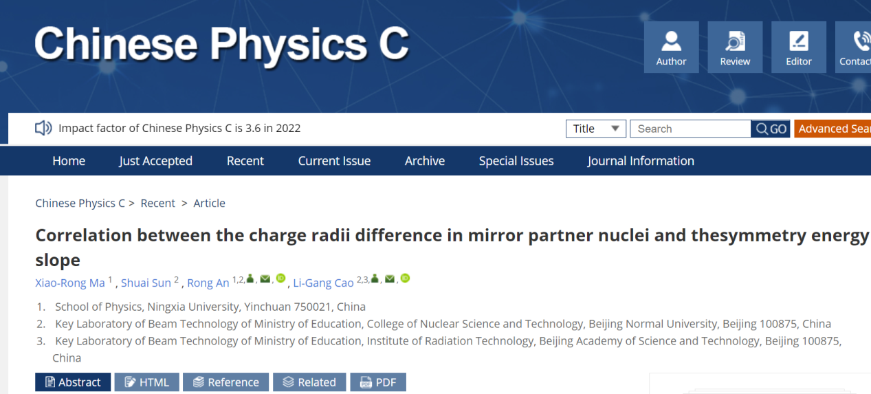 365英国上市公司本科生马小荣在国际学术期刊《Chinese Physics C》发表高水平论文