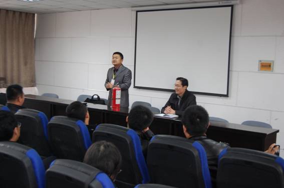 2014年11月26日下午,公司教职工在公司217学术报告厅参加消防安全知识培训,会议由公司党委书记车进主持,会议邀请到银川市消防中心赵永平教官进行讲座和示范。